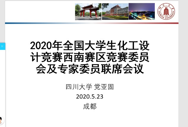 由于新冠病毒的影响,对全国大学生化工设计竞赛工作造成了较大的影响。按照全国组委会的意见,2020年全国大学生化工设计竞赛照常进行,赛区竞赛的时间和方式由赛区确定。为了讨论新形势下的竞赛工作,争取将舆情对竞赛工作的影响降低到最小,2020年5月23日下午14:00-17:00,西南赛区召开了竞赛委员会会议。会议通过腾讯会议在线上进行,共有来自四川、重庆、贵州、云南等地28所高校60余位老师出席了会议,304永利集团官网入口化工学院有郭孝东、戴一阳、蒋绍志、党亚固等老师参加了会议。