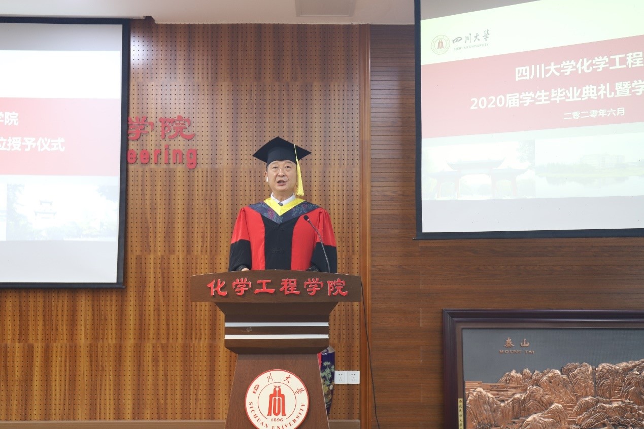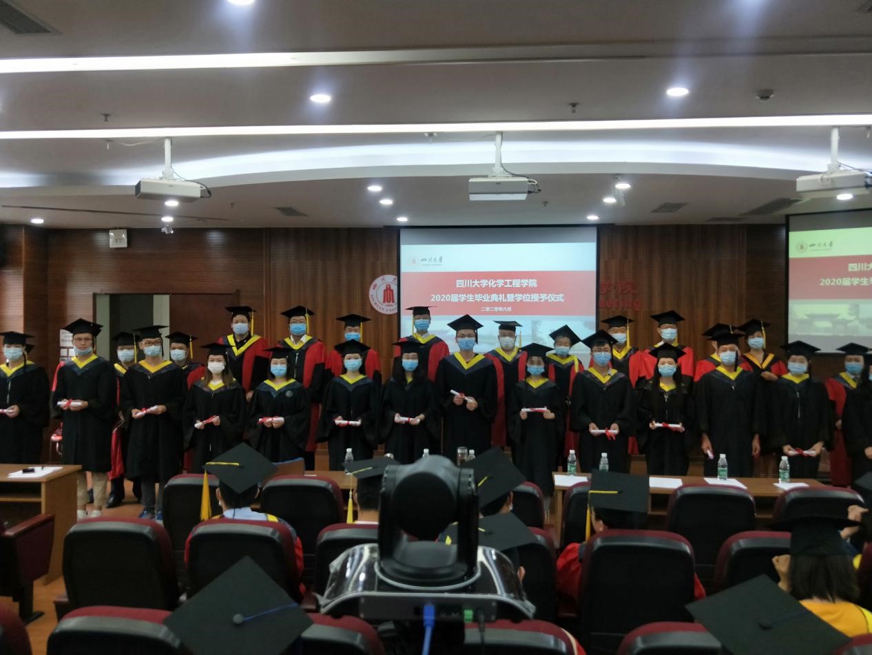 2020年6月22日上午10时,304am永利集团2020届学生毕业典礼暨学位授予仪式在望江校区正行楼313报告厅隆重举行。受疫情影响,本次毕业典礼暨学位授予仪式采用线上、线下同时进行的模式,部分学生代表和全体2020届毕业的18位博士研究生、207位硕士研究生和248位本科生及学生家长们通过网络线上模式齐聚一堂,在师长亲友的共同见证下,为自己的川大化工求学岁月画上圆满的句号,开启新的人生征程。