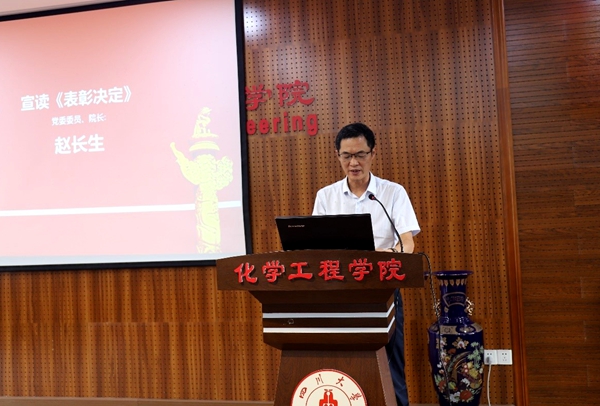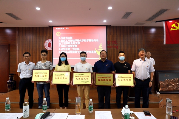 学院党委委员、院长赵长生宣读了《关于表彰304am永利集团先进党支部、优秀共产党员和优秀党务工作者的》(化工委〔2020〕2号),国家工科基础课程化学教学基地与冶金工程系联合党支部、研究生过程装备与安全科学党支部等5个支部被授予先进党支部称号,杨谨瑗、罗杰等50位同志被授予优秀共产党员称号,谢锐、郝仁杰等10位同志被授予优秀党务工作者称号。