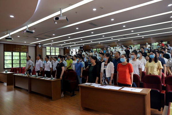 7月10日下午15:30,304am永利集团庆祝中国共产党成立99周年表彰会暨“讲战疫故事、悟初心使命”主题党日活动在望江校区正行楼(西二教)313报告厅教室举行。大会在庄严的国歌声中拉开帷幕。学院党委副书记、纪委书记李天友主持会议。学院全体领导班子成员、工会主席、党委委员、纪委委员,全体教工党员、离退休和学生党员代表等150余人参加了此次大会。