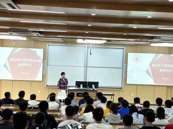 首先,姜利寒副书记结合自身求学和工作经历,对新生的学习和生活进行了全方位的指导。通过对比高中与大学生活的异同点,提醒大家应当尽快适应新的环境,积极转变学习方法并合理安排时间,找到适合自己的学习节奏。同时,要求新生重视大学生活平台(第二课堂),进一步提高自己的综合能力,丰富课余生活。她着重强调了学校相关管理规定,并列举违纪的具体案例让同学们引以为戒。最后,姜书记鼓励同学们要珍惜当下,走好大学生涯的每一步,努力成长为一名优秀的化工人。