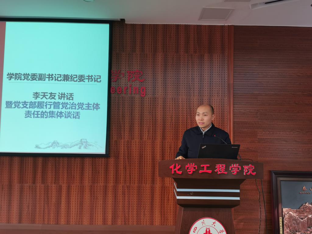 学院党委副书记兼纪委书记对参会委员们进行了党支部履行管党治党主体责任的集体谈话。他说到,全体支部委员要对照《304永利集团官网入口党支部标准化规范化建设工作清单》,严格遵循《中国共产党支部工作条例(试行)》中明确的5条原则和8条任务,加强思想政治引领,筑牢学生理想信念根基,落实立德树人根本任务,保证教学科研管理各项任务完成。各党支部要树牢“四个意识”、坚定“四个自信”、做到“两个维护”,切实把抓好党支部标准化规范化建设,扛牢管党治党的组织责任,打通基层党建“最后一公里”。党支部纪检委员要明确工作职责,发挥纪检作用,推进全面从严治党向纵深发展。