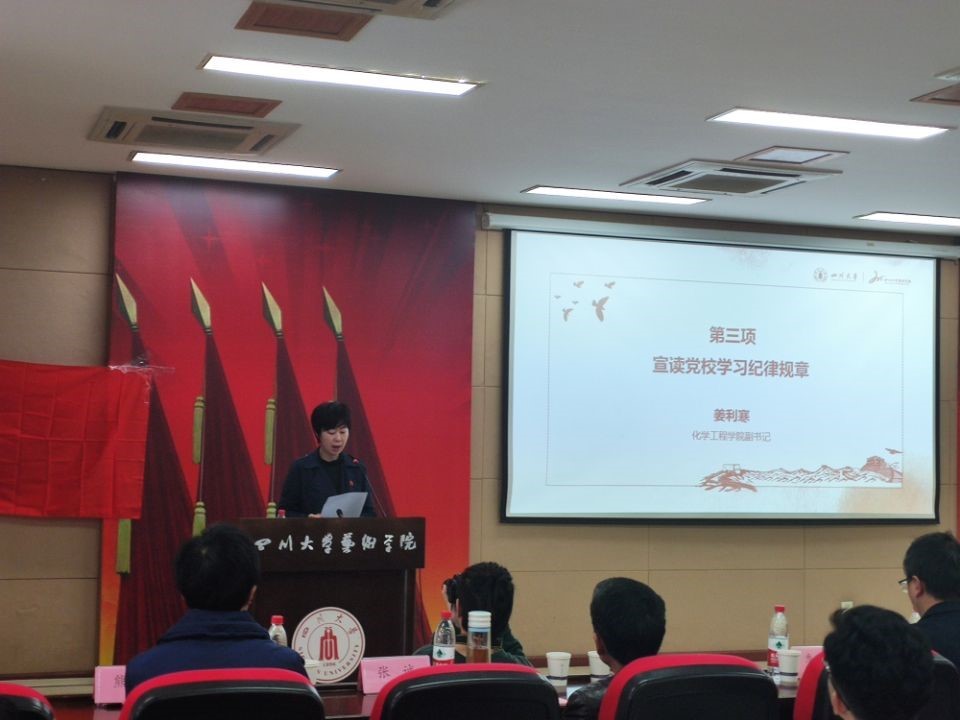 2020年11月14日上午10:00,在304永利集团官网入口江安校区艺术学院A1楼11教室成功举办了304am永利集团、艺术学院、空天科学与工程学院、建筑与环境学院联合党校第149期发展对象培训班开班典礼暨第一讲。此次开班典礼有幸邀请到化学工学院党委副书记姜利寒老师和党校指导教师李珍珍老师,此外还邀请了艺术学院党委书记熊伟教授、党委副书记杨梅老师和空天科学与工程学院党委副书记季袁冬老师等。其中姜利寒副书记宣读了党校学习纪律规章。
