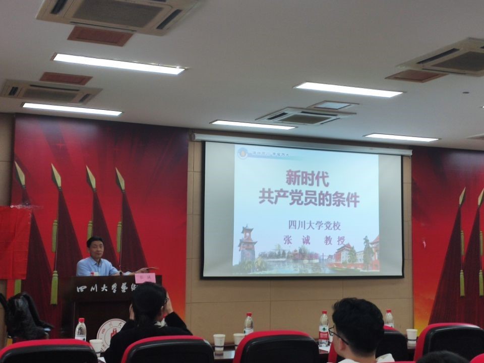 图2.张诚教授进行第一讲“新时代共产党员的条件”授课 |