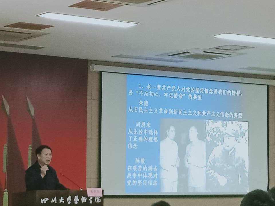 吴老师就“坚定对党和中国特色社会主义的信念”这个话题进行了深入的讲解。习近平总书记在视察深圳时说到:“对马克思主义的信仰、对社会主义和共产主义的信念是共产党人的政治灵魂,是共产党人经受住任何考验的精神支柱。”信念是一种愿望和追求,它决定了人们生活、奋斗和理想遵循的原则。保持对于党坚定的信念就十分的重要,吴老师从理论、现实与情感等方面列举了李四光、钱学森、江姐等人的例子,生动地讲述了科学信念对于党成功的促进作用、对于个人发展的推动和品格的提升作用。毛主席曾将青年比做早上八九点的太阳。大学生是未来国家的栋梁,我们更需要树立对党的坚定信念,为中国梦的实现付出自己的一份力。