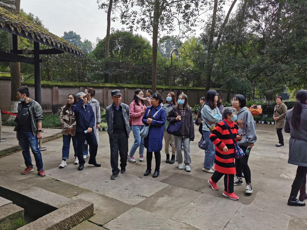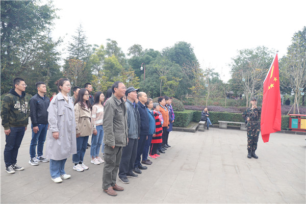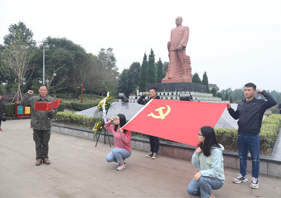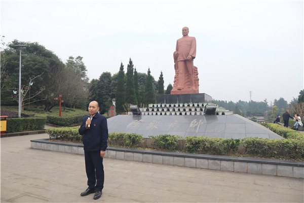 上午10:20,到达陈毅故居后,在教官的主持下进行了仪式教学。在陈毅元帅的雕像前,全体支部委员一起面向国旗齐唱《中华人民共和国国歌》。