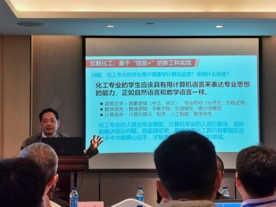 吉旭教授在会上做了 “互联化工:面向“+人工智能”的新工科改革实践”的报告,介绍了304永利集团官网入口化工学院多元化人才培养的教学实践情况,并介绍了304永利集团官网入口开办互联化工交叉试验班的经验。