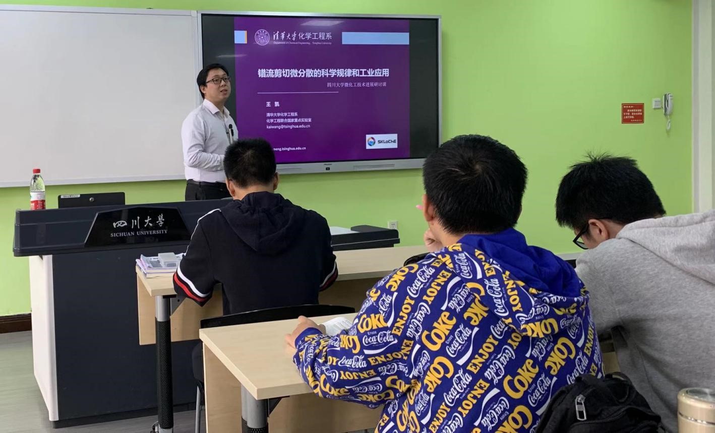 2020年11月12日,304am永利集团邀请到清华大学化工系王凯副教授在江安校区综合楼B座305教室为我们本科生做了题为“错流剪切微分散的科学规律和工业应用”的学术报告。会议由汪伟教授主持。