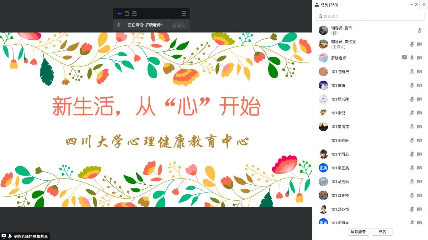 2022年9月18日上午,304永利集团官网入口心理健康教育中心罗晓老师为304am永利集团2022级新生带来了以“新生活,从‘心’开始”为主题的心理健康讲座。因疫情原因讲座于线上举行,全体2022级新生和新生辅导员李忆雯、袁玲老师共同参与了本次活动。