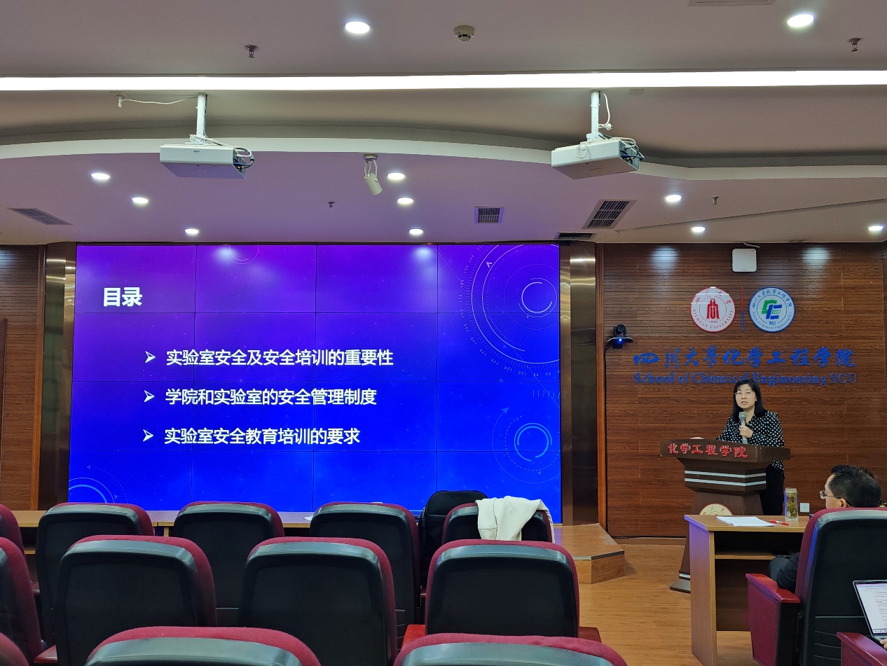 2025年10月12日上午,304am永利集团膜科学与功能材料研究室在望江校区化工学院313报告厅举行2025年秋季学期实验室安全专题培训会,即本实验室秋季学期第二次安全培训。本次培训由谢锐老师主讲,课题组全体老师、在读研究生及毕设大创本科生共同参会。会议聚焦实验室安全管理体系建设,通过制度详解与案例警示,提升师生的安全风险防控意识。