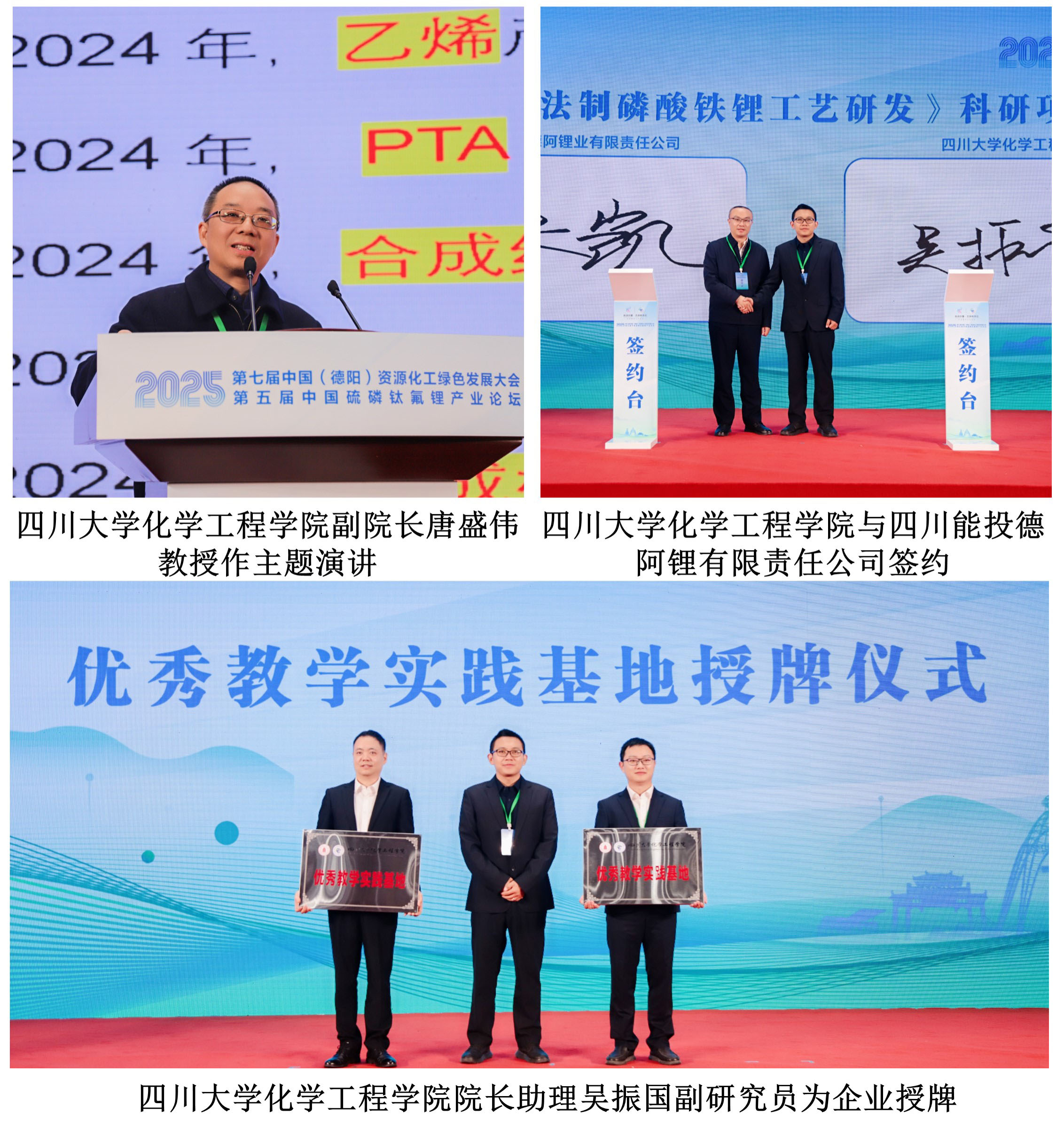 开幕式上,304am永利集团副院长唐盛伟教授作了《化工产业现状与未来发展趋势》主题演讲,304am永利集团与四川能投德阿锂业有限责任公司签订了合作协议,并向龙佰四川钛业有限公司、四川龙蟒磷化工有限公司授予“优秀教学实践基地”称号。