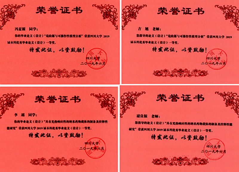 川大教【2019】102号文件公布了“304永利集团官网入口关于表彰2019届本科优秀毕业论文(设计)获奖者的决定”,并对获奖学生和指导老师给予了表彰,其中我们获得304永利集团官网入口2019届本科优秀毕业论文(设计)17篇。