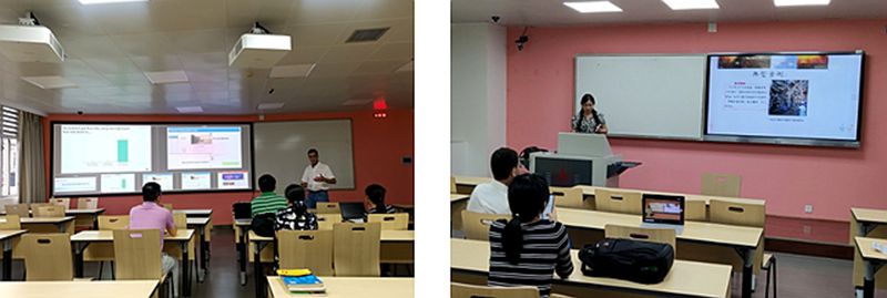 我们三位参赛教师充分利用学校智慧教室教学设施,采用多方位教学互动模式,深入浅出地为现场同学讲解专业知识原理。三位老师都充分展现出了各自的专业特点和个人授课特色。在准确把握教学内容的同时,充分调动了同学们的积极性,让同学们在课程环节中充分思考,充分参与,高效地把握教学知识,巩固学习内容。
