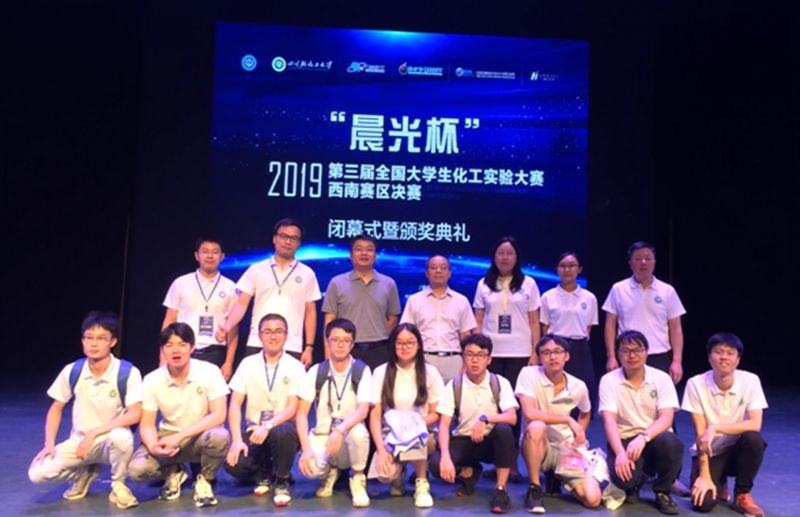 2019年7月19日至21日,2019“晨光杯”第三届全国大学生化工实验大赛西南赛区决赛在四川轻化工大学举行。本次竞赛从2019年5月开始启动,共有来自云、贵、川、渝、桂等地39所高校的500多支队伍报名参赛。经过赛区初赛选拔,由我们熊山威、周昌海、吴媛媛三位同学组成的“EXPN队”,谢鑫、张正、范钲威三位同学组成的“不屈意志队”及李玉铭、谢成林、傅子森三位同学组成的“生工也要学化工队”成功入围赛区决赛。