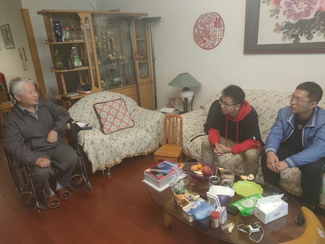 游贤贵老师,虽年逾八十但仍红光满面神采奕奕。游老师与志愿者们谈起了自己的求学和工作经历,并关心我们生活、学习上是否适应,还给出了实用中肯的建议,使学生志愿者们受益匪浅。