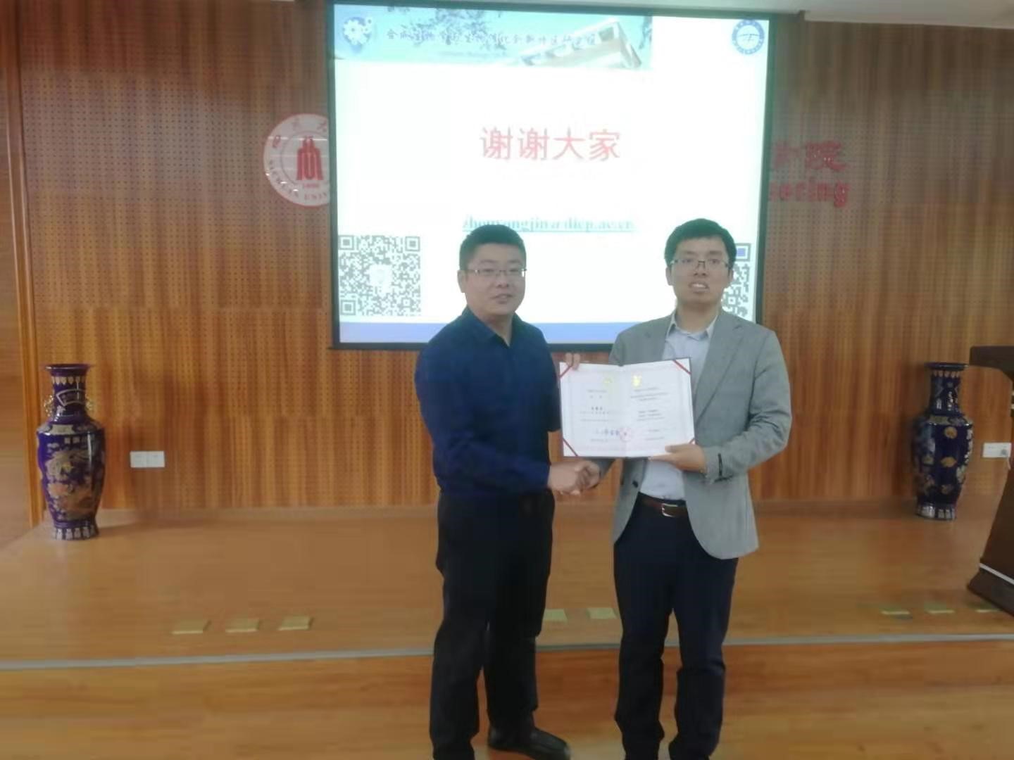 报告最后,李德富老师为周雍进老师颁发了客座研究员聘书,以感谢周老师积极参与我们学科发展建设,并希望周老师能够继续为化工学院“双一流”建设出谋划策。
