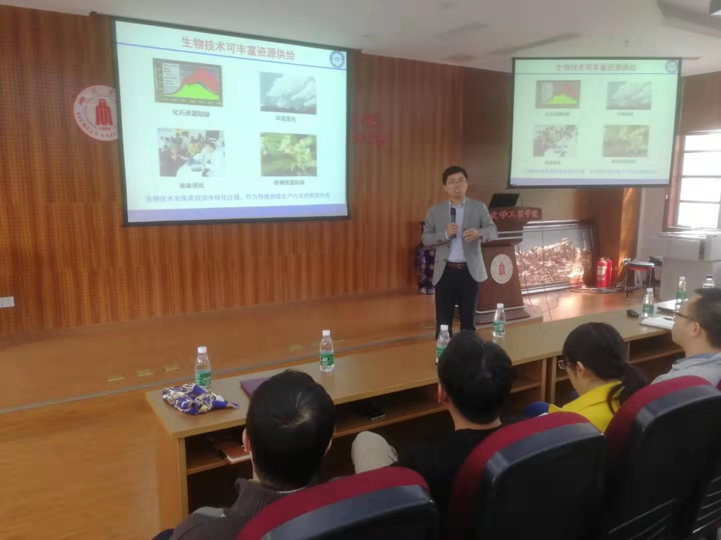 为解决研究生在论文写作之时遇到的瓶颈,帮助我们研究生提升科研思维,助力我们科研水平的提升,加强我们“双一流”建设。2019年10月31日下午,中科院大连化学物理研究所研究员周雍进老师应邀于正行楼313报告厅为我们研究生带来了题为“学术论文写作与科研思维培养”的学术报告,院长助理兼制药与生物工程系主任李德富主持本次论坛。