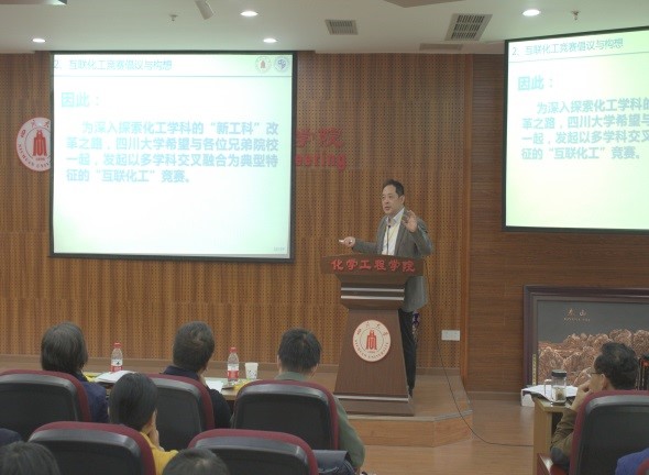 严斌宇介绍了304永利集团官网入口的教学改革的成果和建设思路,指出“文进、理优、工改、医强”是304永利集团官网入口从校级层面提出的战略目标,促进新工科改革对于学校双一流建设具有重要意义。庞国伟书记指出,304am永利集团根据新工科建设和专业发展的要求,大力进行教学教改,在化学工程与工艺专业下面建设了“大数据与互联化工”、“新能源与材料化工”、“低碳技术与绿色化工”三个专业方向,并正在与计算机(软件)学院等共同筹建“互联化工”交叉专业创新班。“互联化工”是304永利集团官网入口重点推进的“互联网+”试点创新平台,借助该创新平台的建设,既可以为学科建设发展探索一条新的路径,也可以为新工科背景下传统工科专业“化学工程与工艺”的新工科建设提供平台,从而更多、更好地培养复合型人才、创新性人才。