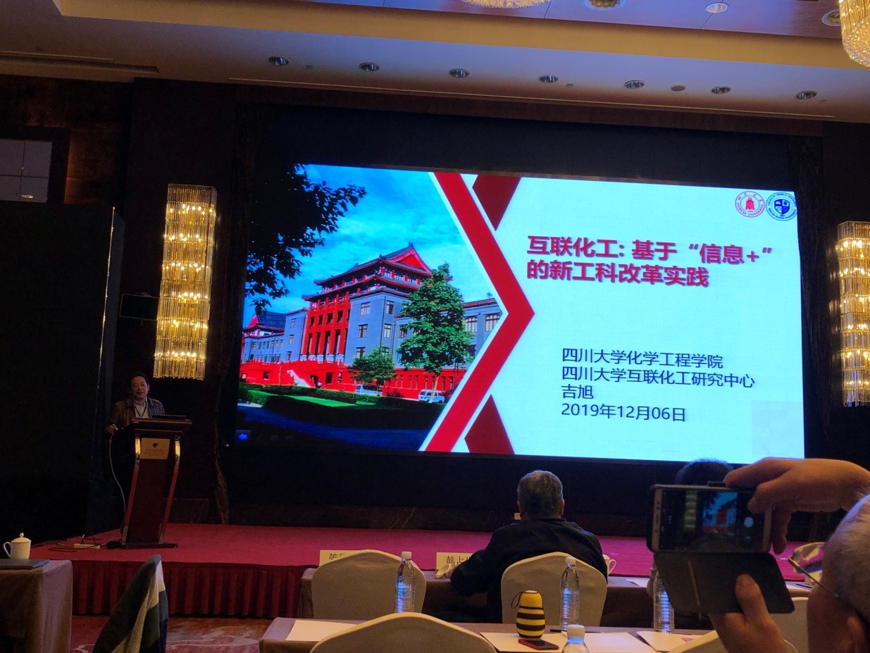 在此次中国化工高等教育年会上,我们吉旭教授受邀做了题为“互联化工:基于'信息+'的新工科实践”化学工程与工艺专业方向建设的报告。吉旭教授结合“服务于产业发展的高等教育”的年会主题,详细介绍了我们化学工程与工艺本科专业互联化工专业方向建设的背景、举措和进展,受到与会专家的高度关注。