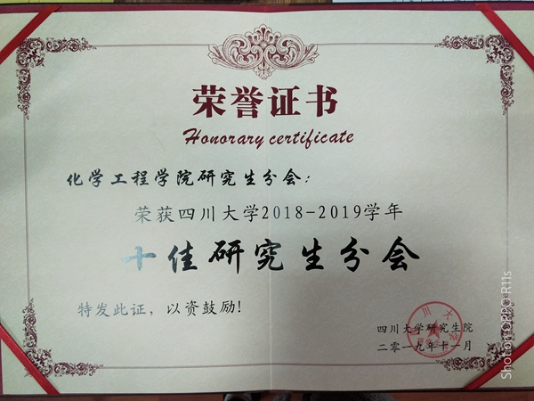 经过304永利集团官网入口研究生会2018-2019学年学院研究生分会考核评定,304am永利集团研究生会以全校第七的成绩荣获“304永利集团官网入口2018-2019学年十佳研究生会”荣誉称号。